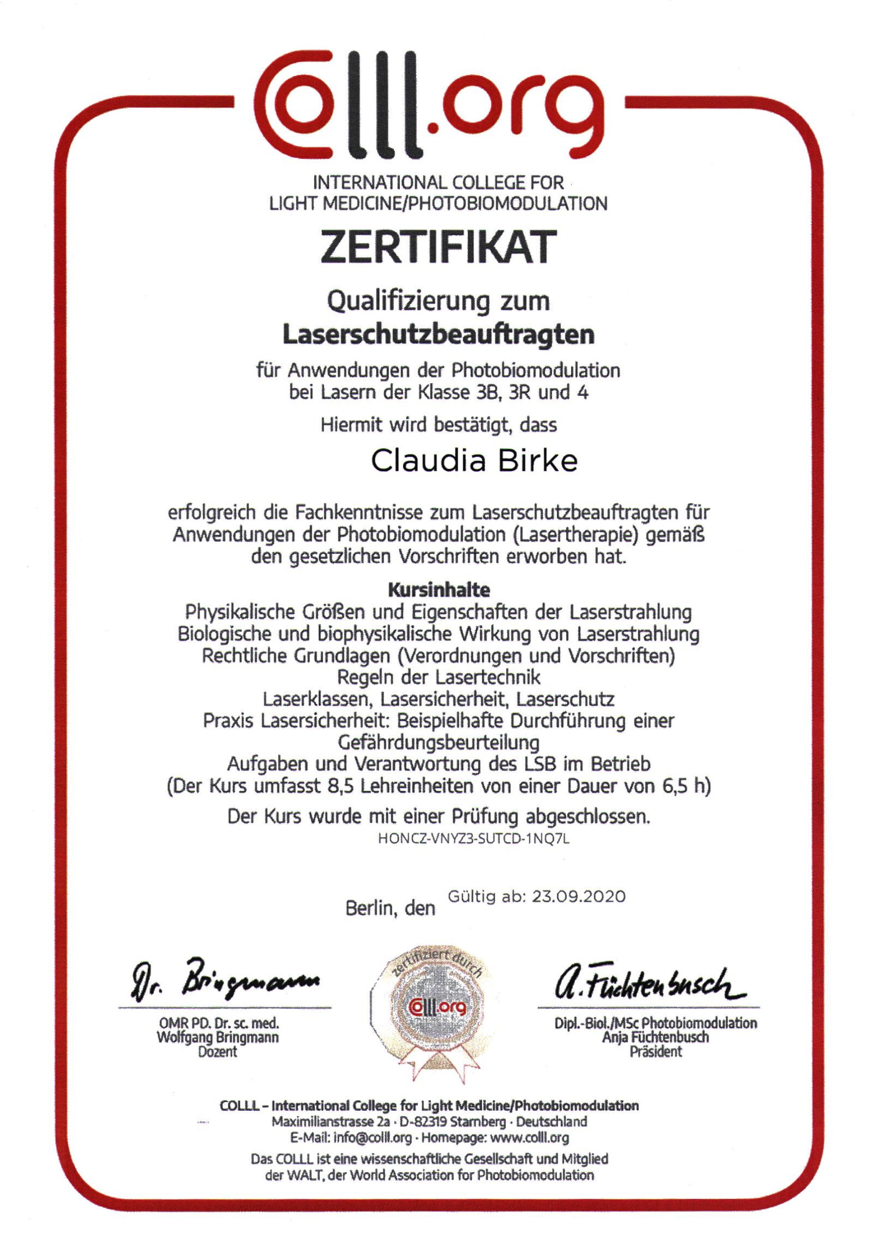 Zertifizierte Therapeutin für "Segment-, BGM-, Fazientherapie nach Szperling©"