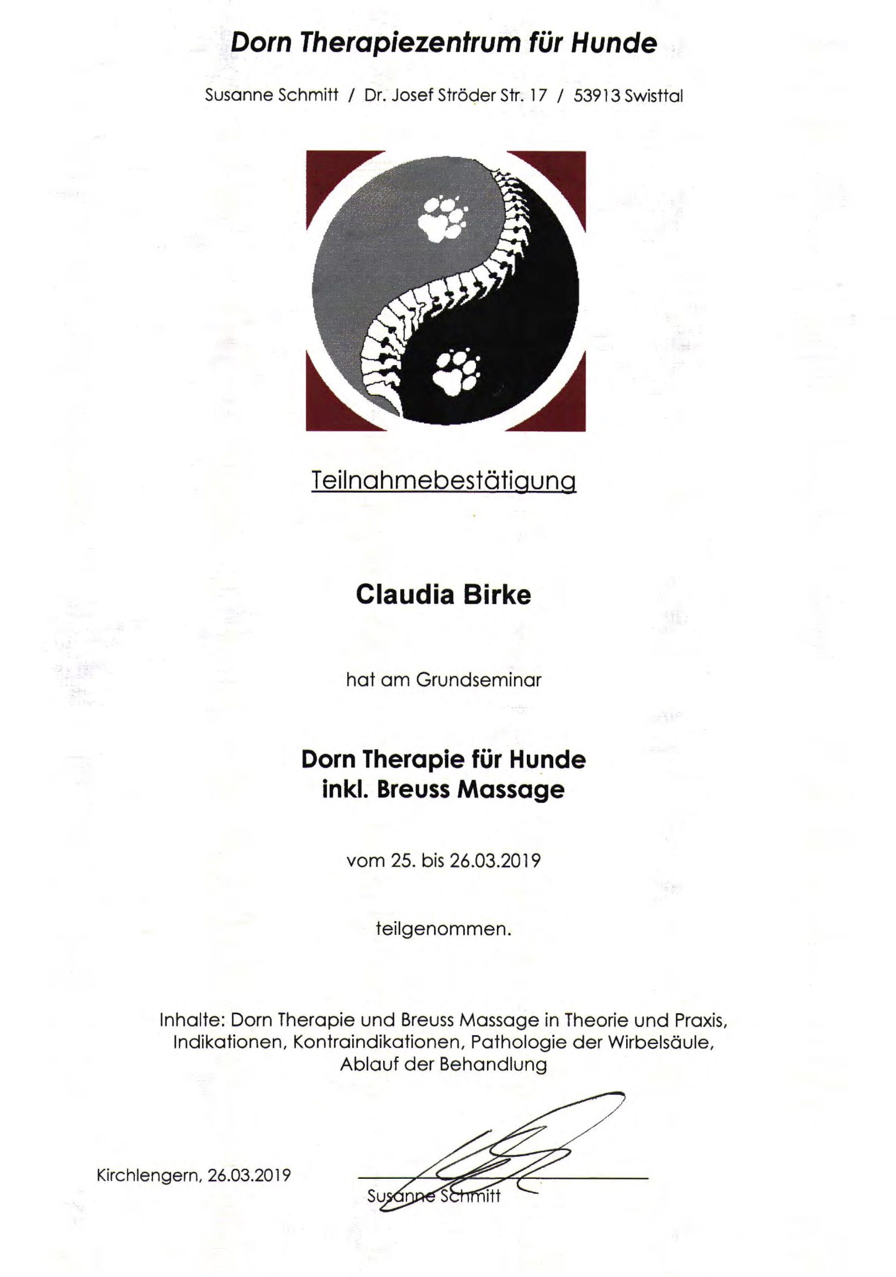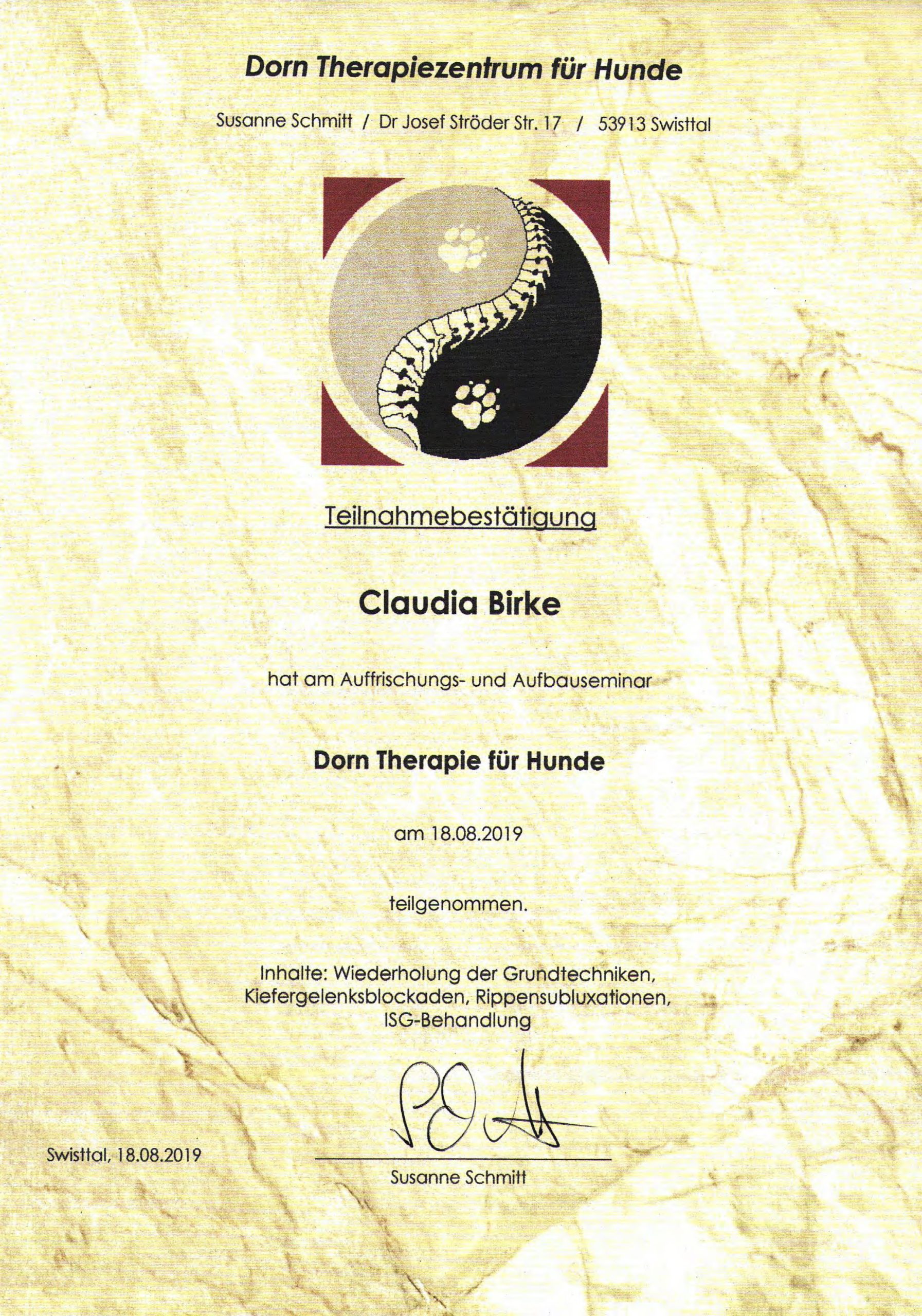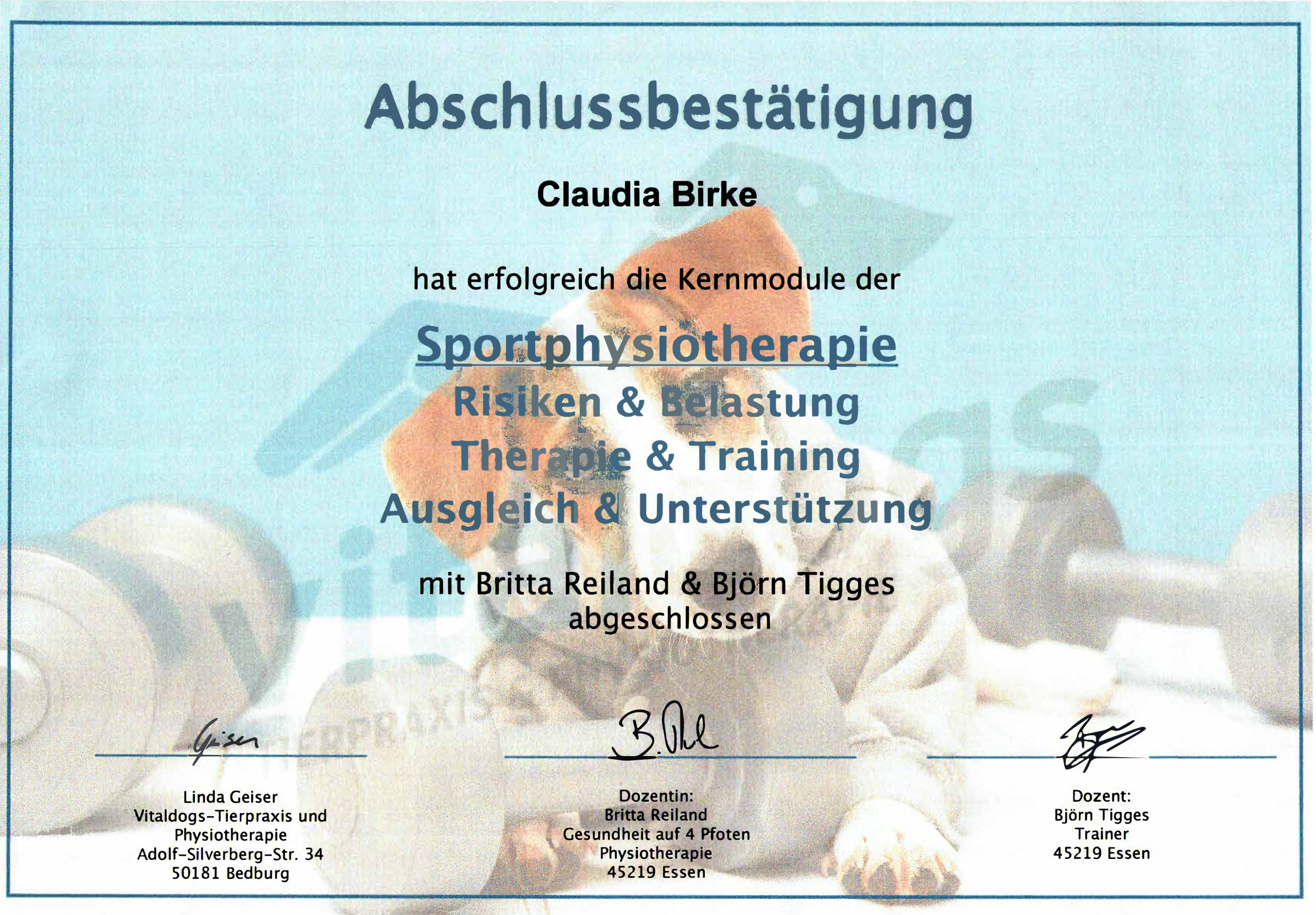 Mit viel Erfahrung, Ruhe und Fachwissen begleitet Claudia Birke Hunde mit orthopädischen, neurologischen oder altersbedingten Beschwerden auf dem Weg zu mehr Beweglichkeit und Wohlbefinden. Jede Behandlung basiert auf einer gründlichen Anamnese, klaren Zielen und sanften, wirkungsvollen Methoden aus Tierphysiotherapie und Osteopathie – verständlich erklärt und transparent dokumentiert.